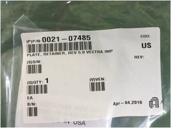AMAT Part No : 0021-07485 , PLATE,RETAINER,REV 5.0 VECTRA IMP